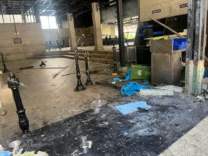 Shattered glass and furniture were seen strewn on the floor of the cafe, which drew attention among residents.