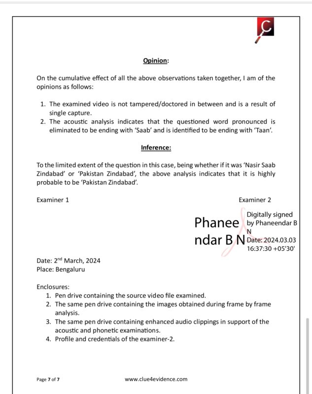 The accused had been detained for questioning where they denied raising any Pro-Pakistan slogans. However, the police continued to probe and waited for the FSL report on the video clip submitted to ascertain the facts of the incident.