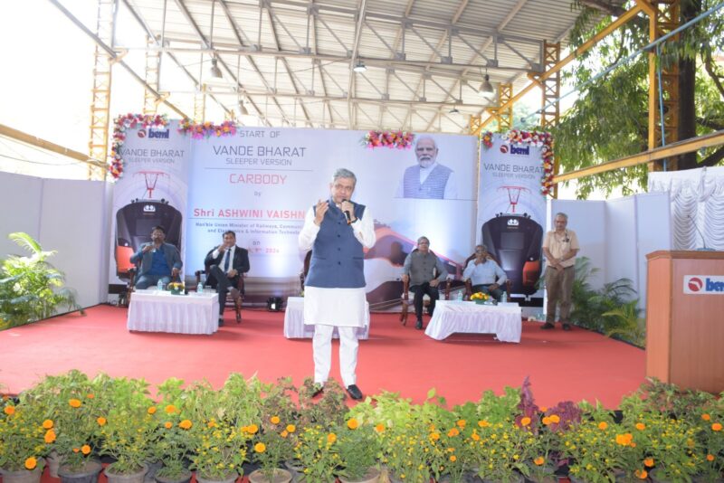 he Union Minister for Railways,Ashwini Vaishnaw, marked a historic moment as he inaugurated the carbody structure of India’s pioneering Vande Bharat Sleeper trainset, proudly manufactured by BEML Ltd at its Bangalore-based rail unit.