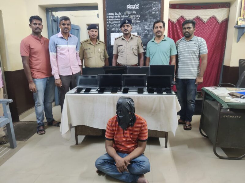 The Mysuru Railway Police on Thursday arrested a 34-year-old cook from Mysuru and recovered laptops and mobile phones worth 10.2 lakh from him.