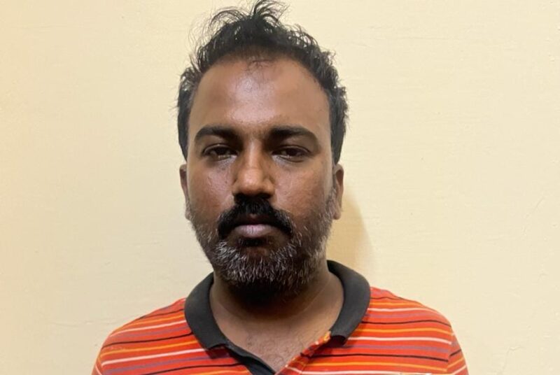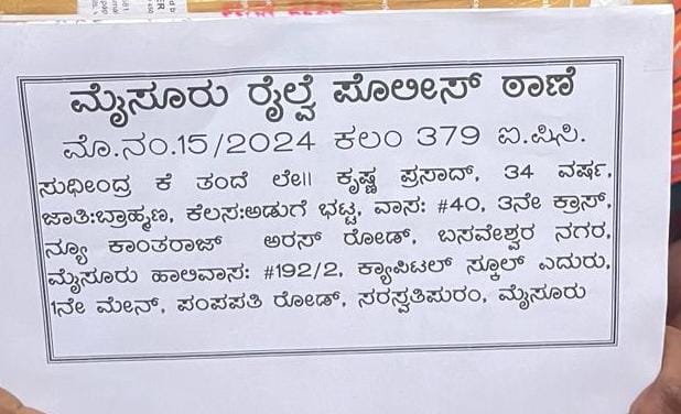 Based on a complaint of a laptop bag belonging to a techie that was stolen from the moving train,the railway police stepped up vigil and zeroed in on Sudhindra while he was moving suspiciously with a laptop bag .