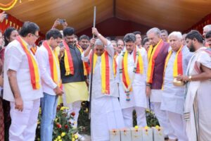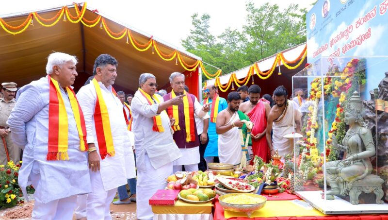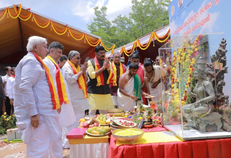 He was addressing the gathering after performing Bhoomi Puja for the construction of a bronze statue of Nada Devi Bhuvaneshwari near the western entrance of Vidhana Soudha as part of the Karnataka Namakarana Suvarna Mahotsava celebrations organised by the Department of Kannada and Culture.