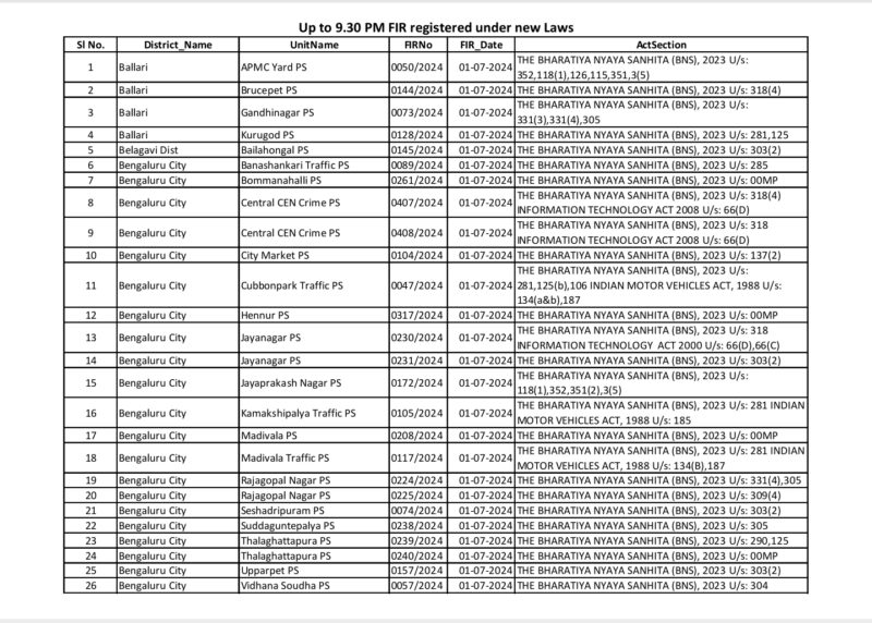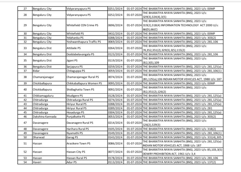 ours after the newly introduced Bharatiya Nyaya Sanhita (BNS) was enforced,the Hassan police arrested a head constable for stabbing his wife to death in the SP office premises on Monday.