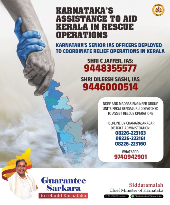 The Government of Karnataka is in constant touch with the disaster management authorities of the Government of Kerala and is providing necessary assistance.
