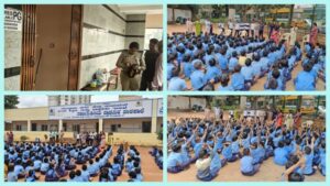 Issues like,POCSO,child marriage and addiction and ill effect of sale and consumption of tobacco around the school and colleges have been imparted.They were also told that they have duties towards the society and help and support police to fight social evils.