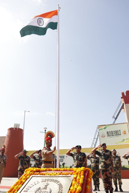 Hiten Shukla, Gujarat: On the occasion of 78th Independence Day on 15th August 2024, Sh Abhishek Pathak, IPS, Inspector General, BSF Gujarat Frontier hoisted the national flag at Seema Darshan, Nadabet near Indo-Pak International Border in presence of senior officers andB SF personnel, school children, and local citizens. The historic moment was celebrated in a very cheerful and patriotic atmosphere, which instilled a sense of nationalism and pride in all.