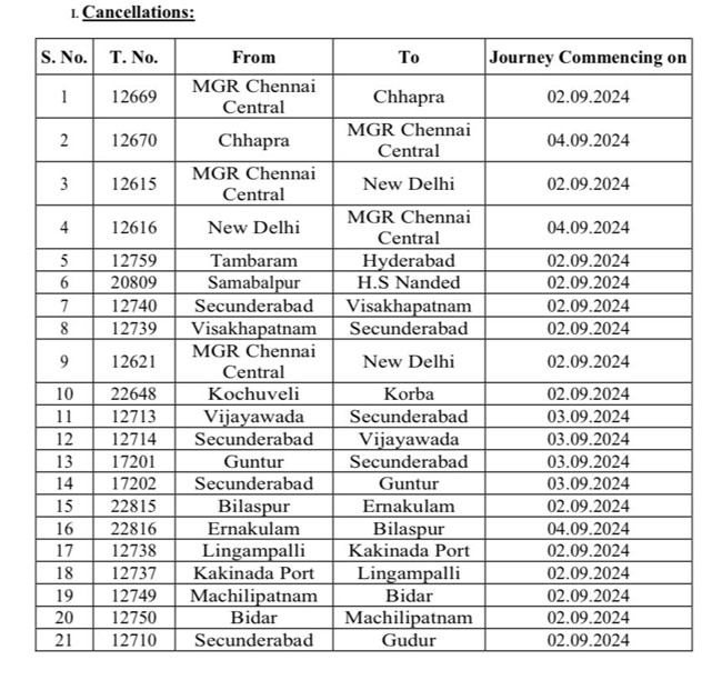 South Central Railway has said that 432 trains have been canceled due to heavy rains and floods in Telugu states.