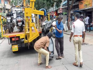 In order to decongest Majestic area from haphazard Parking the Upparpet traffic police since Friday launched special drive to tow vehicles especially two wheelers parked on roadside on no parking zones in and around Majestic area and booked as many as 100 cases so far.