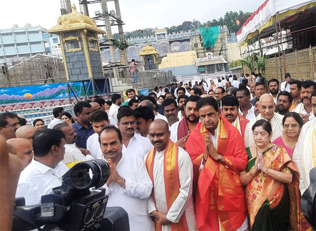 Tirumala: BR Naidu took oath as the chairman of Tithide. Evo Shyamala Rao administered oath to BR Naidu and 16 members of the Governing Council at Ranganayakula Mandapam in Srivari Temple. Later BR Naidu visited Srivara. The chairman was first welcomed by Additional EO Venkaiah Chaudhary at the temple mahadwara. He went inside the temple from Vaikuntham Qcomplex and visited Lord Bhuvaraha.
