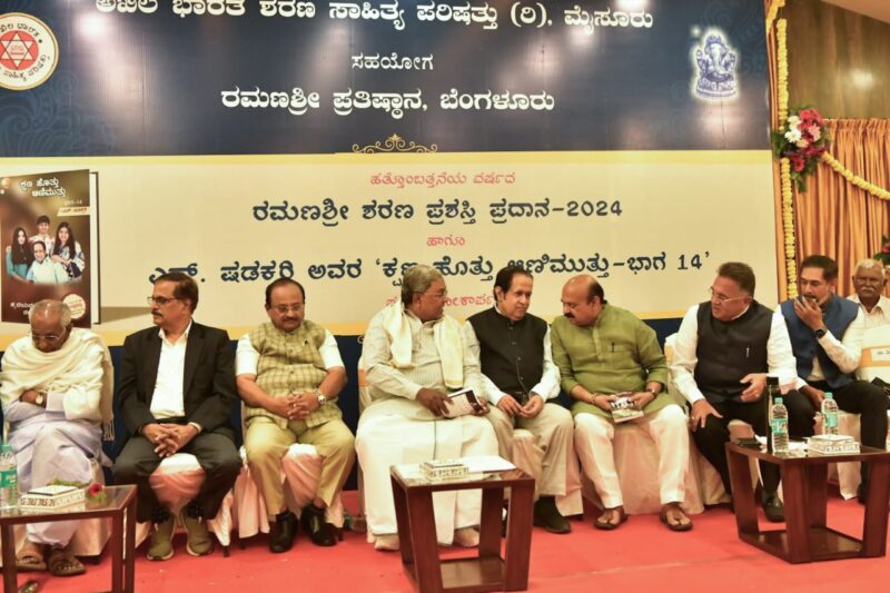 He was speaking at the 19th annual Ramanshree Sharana Award ceremony and the book launch of Kshana Hottu Animuttu Part-14” by S.Shadakshari, organized by the All India Sharana Sahitya Parishat in association with Mysore Sahyog Ramanshree Pratishthan,Bengaluru,held at Hotel Ramanshree here on Monday.