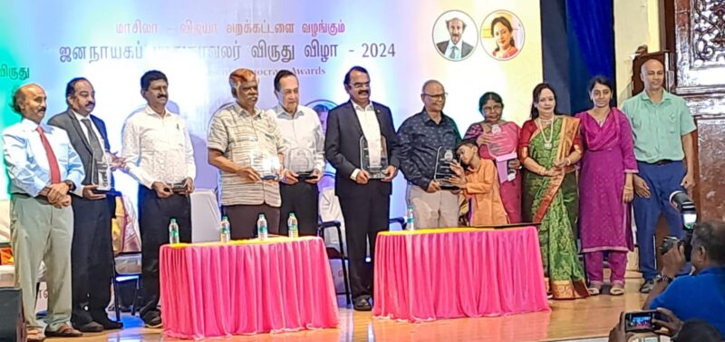 In the event organised by Masila Vijaya Arakattalai, Mylswamy Annadurai,former Director,India Space Research Organisation (ISRO) handed over the awards to the recipients and spoke about the importance of democracy and the crucial role played by the four pillars of democracy.