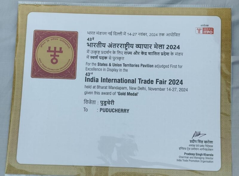 Held at Bharat Mandapam from 14th to 27th November, the pavilion showcased the best of Puducherry’s industries and crafts.