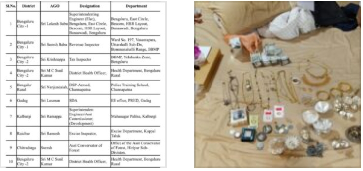 After gathering information based on the complaints several teams of officials conducted raids in Bengaluru, Bengaluru district,Gadag,Kalaburagi,Raichur,and Chitradurga and recovered properties and documents for verification.