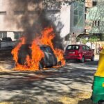 In another incident,a car parked near Lalbagh metro station catches fire on Monday evening.