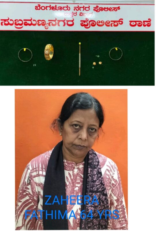 Since she would dress up decently and aged people would not doubt her.Making use of this,Fathima the accused visited a hotel on Dr.Rajkumar Road in Subramanyanagar where the exhibition was held and stole ₹4.7 lakh worth diamond bracelet and a pair of gold bangles .