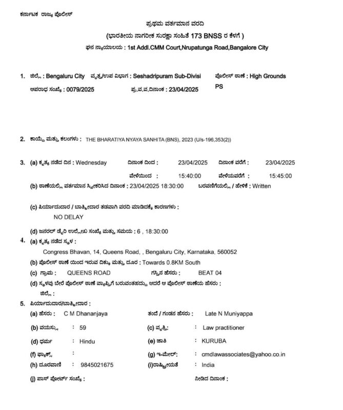 Based on the complaint,the police charged the members of the IT cell under section 196 (promotion of enmity between different groups on grounds like religion,race, place of birth,residence,language) and 353 (2) ( public mischief through misinformation) of BNS