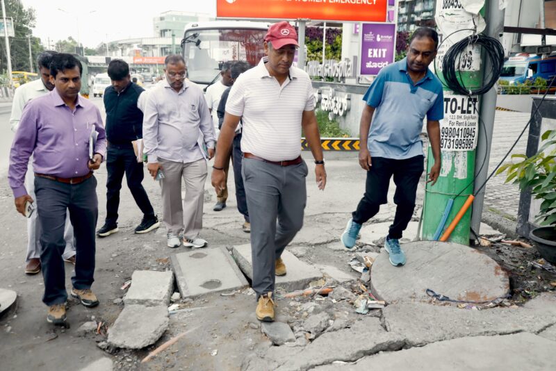 The Chief Commissioner conducted a 2-kilometer walking inspection from Iblur Junction to Kasavanahalli Road Junction,assessing conditions with officials.