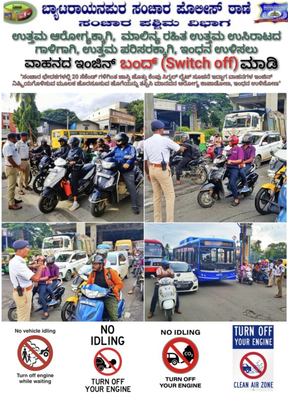 As part of this new initiative,the Byatarayanapura traffic police are approaching the motorists waiting at the signals with the eco-friendly messages,and urging motorists to adopt simple yet impactful habits—such as switching off engines at long signals,maintaining vehicle health, and reduce pollution which is impacting global warming.