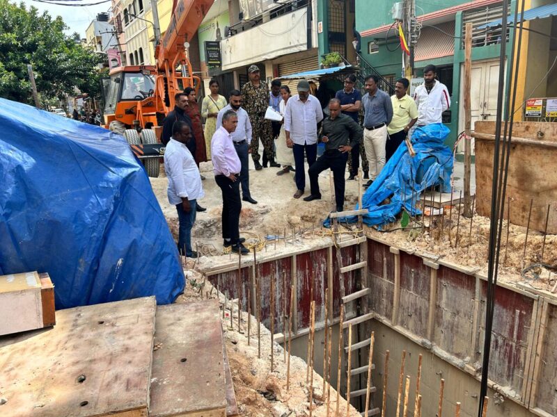 During an inspection tour of various locations in the city’s South Zone today,he stated that a 1.3 km-long stormwater drain is being constructed to connect Sindhoora Kalyana Mantapa to K-210.