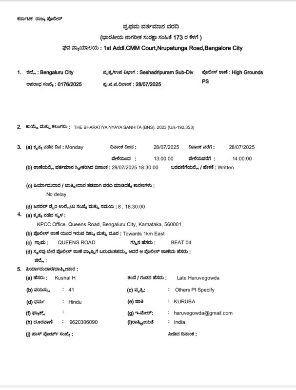 The FIR was filed following a complaint by Kushal H,a Congress party worker.