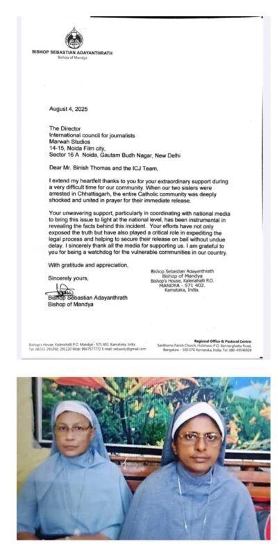 “Bishop’s extends heartfelt gratitude to ICJ Director,Dr.Binish Thomas and all media outlets for their wonderful efforts and support in highlighting the case of the sisters arrested in Chhattisgarh.
