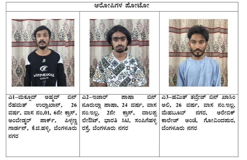 Deputy Commissioner of Police,East Division,D.Devraj, said that the accused Maqsood Ahmed,26,vegetable vendor at Bazaar Street in Halasuru and resident of DJ Halli and his associates Izhar Pasha,24 and Hameed Tabrez,26 were track down based on the CCTV footage .