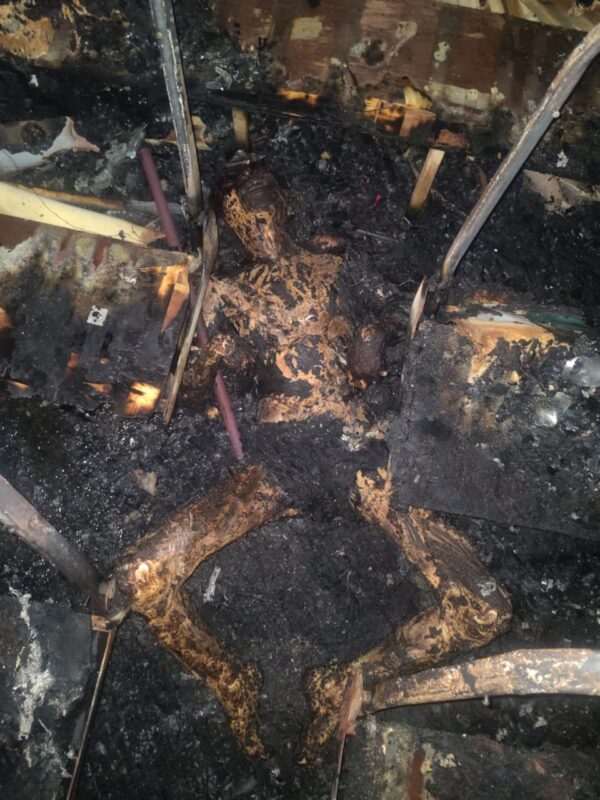 Police suspect that the death due to due to accidental fire from the burning beedis.The police are also not ruling the possibility of foul play and initiated investigations to ascertain the identity of the deceased.