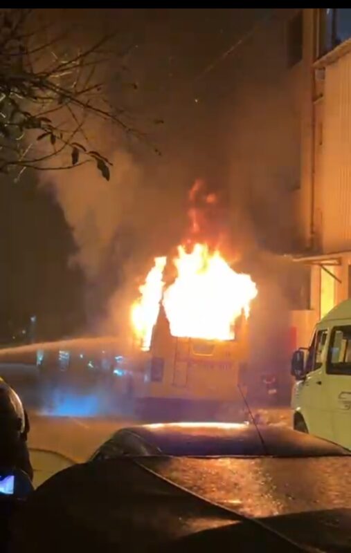 Passers-by noticed the fire in the bus and alerted the fire control room.The fire and emergency service personnel rushed to the spot and put out the fire before recovering the body.