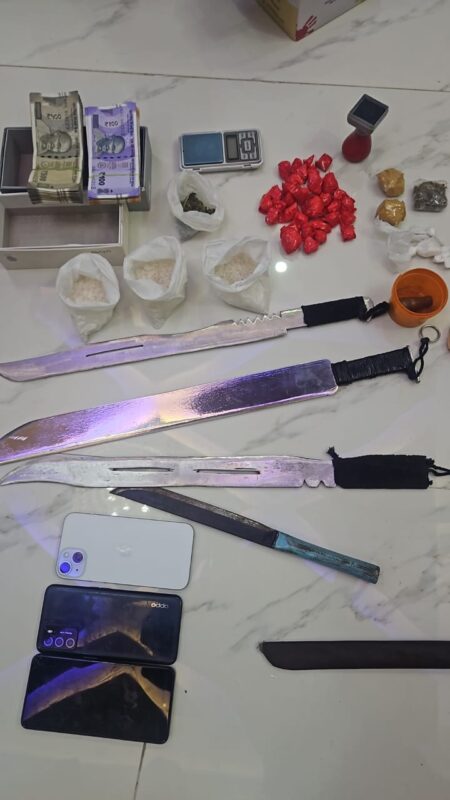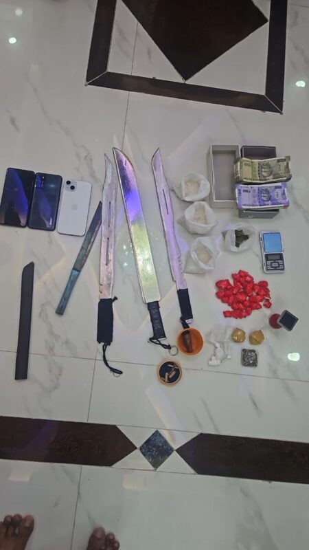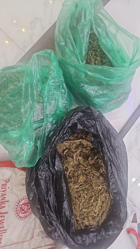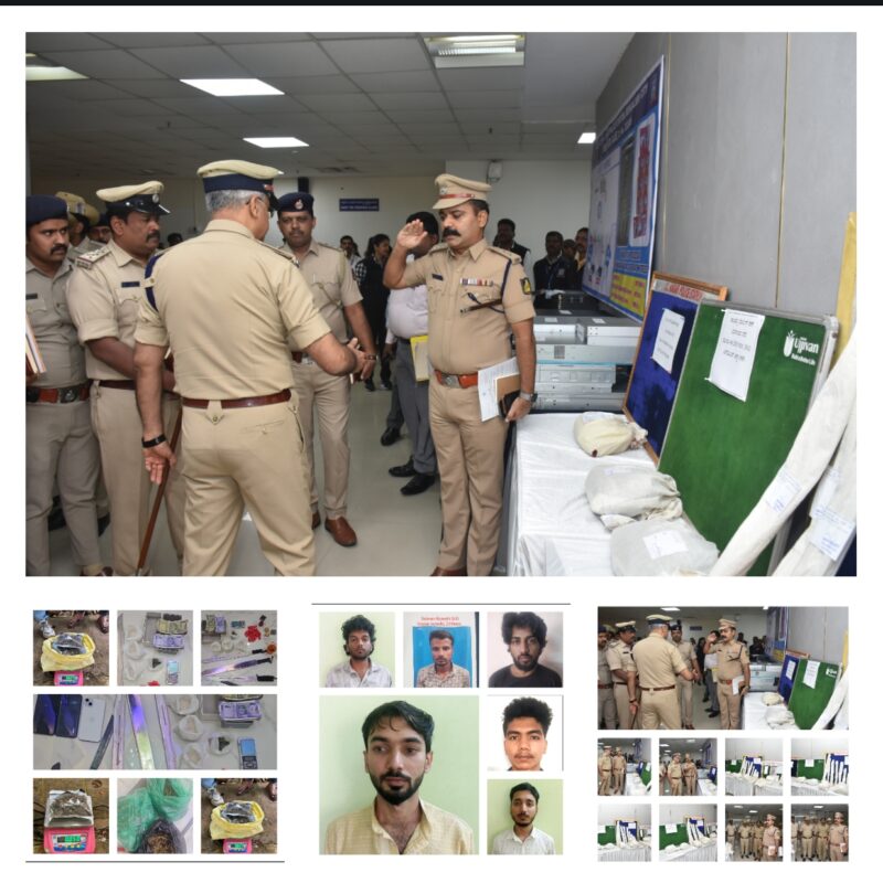 The police have seized 6.2 kilograms of Ganja,270 grams of MDMA,75 grams of charas,three mobile phones and cash Rs.69,100 from them.
