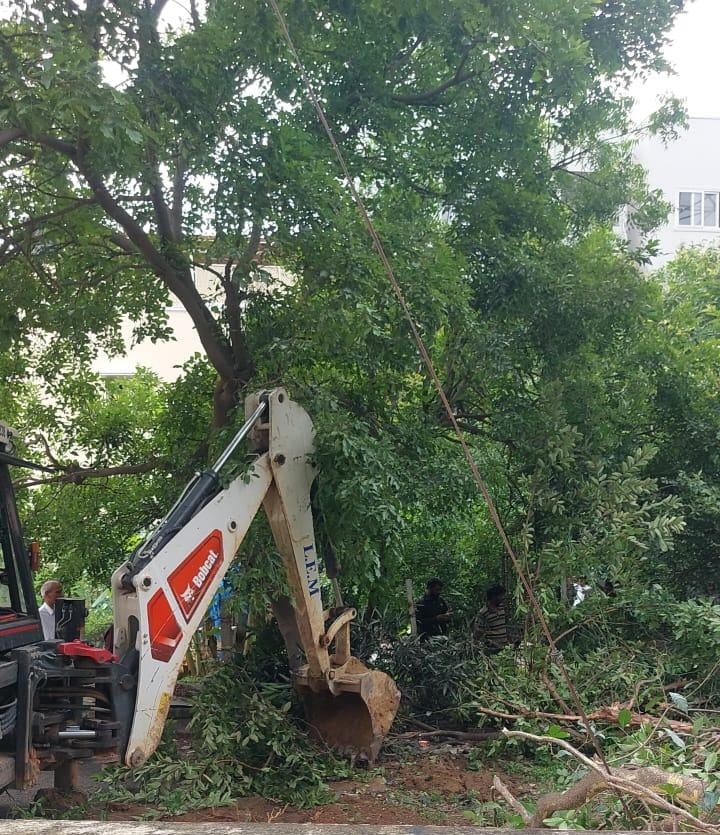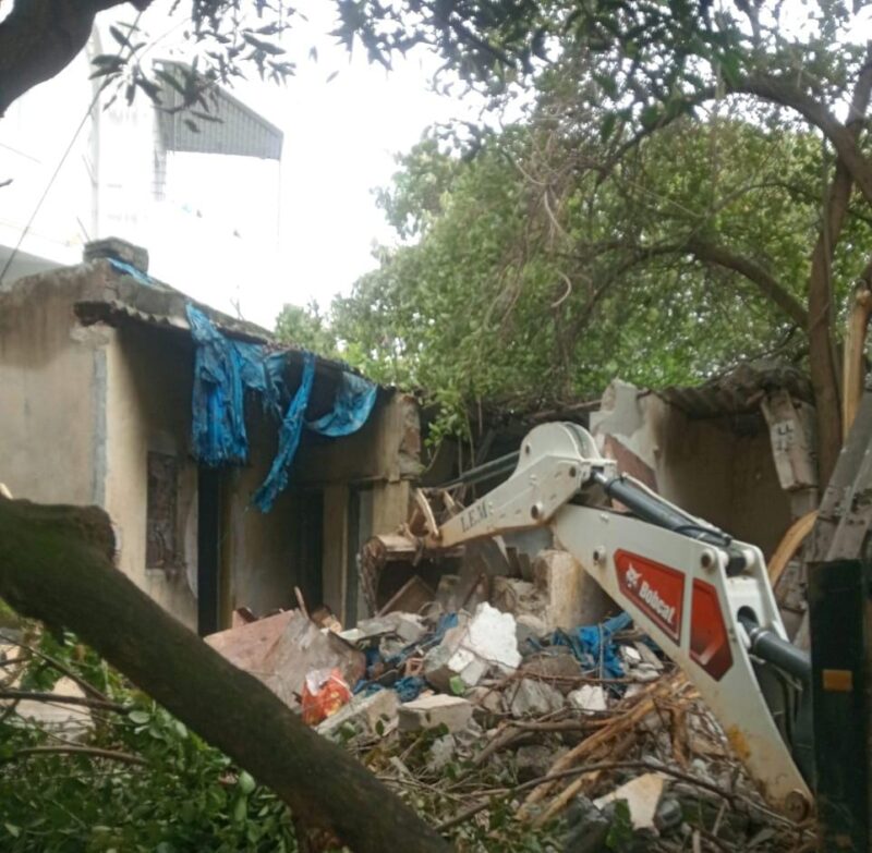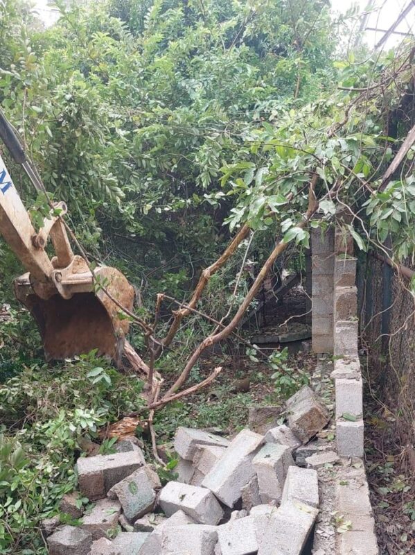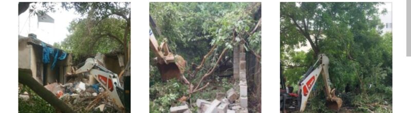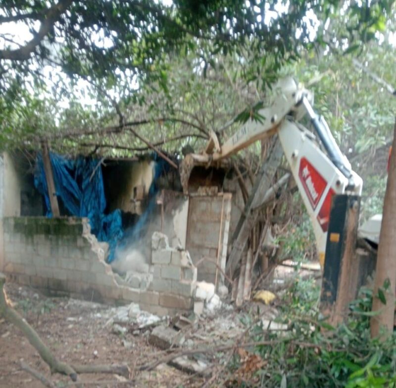 The encroached area included a shed, an open space, and a compound wall.These structures were demolished using a JCB machine,and the land has been reclaimed and brought under government control.