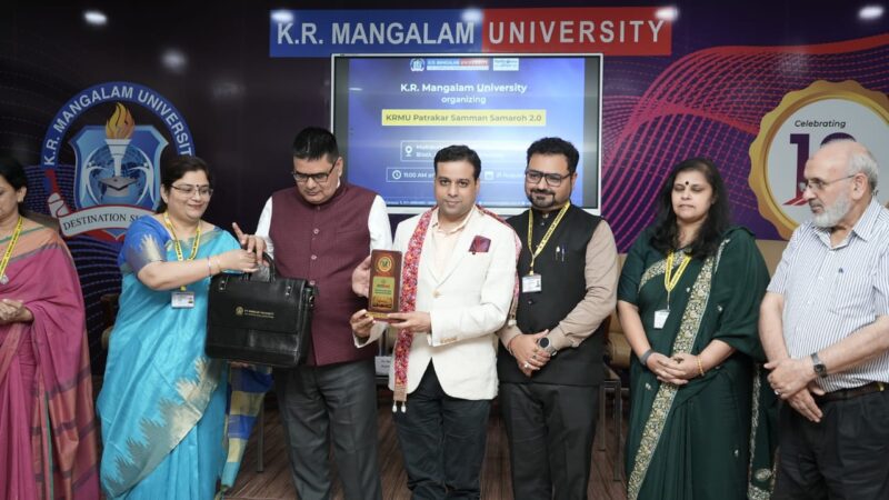 Gurugram, 21 August 2025 – K.R. Mangalam University successfully organized the Patrkar Samman Samaroh 2.0, an event dedicated to honoring journalists for their relentless service to society and their unwavering commitment to truth and ethics in journalism. The event took place on the university’s Gurugram campus and was marked by a distinguished gathering of eminent personalities from the field of media, education, and social service.