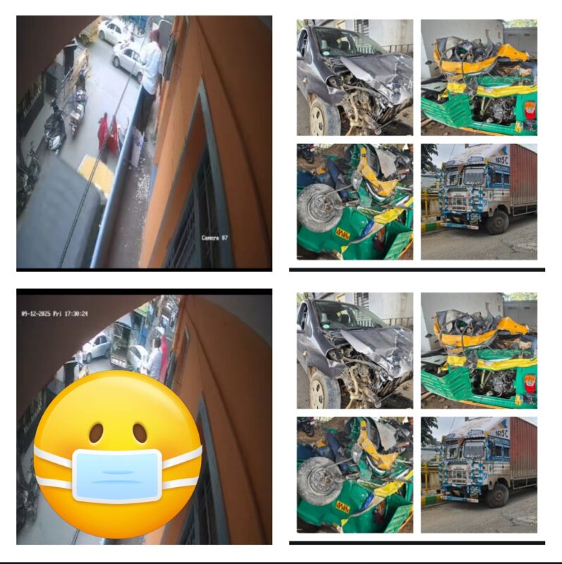 While Anjanadevi came under the truck,m her friend narrowly escaped unhurt.The while incident was captured on the CCTV cameras installed near-by.