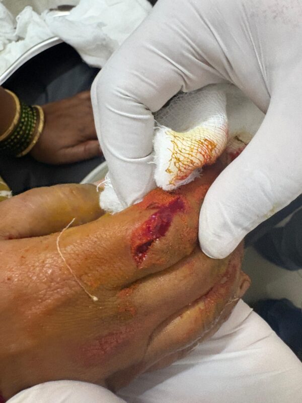 The victim sustained injuries on their hands were treated at the hospital.The Girinagar police have formed a special team to track down the accused .