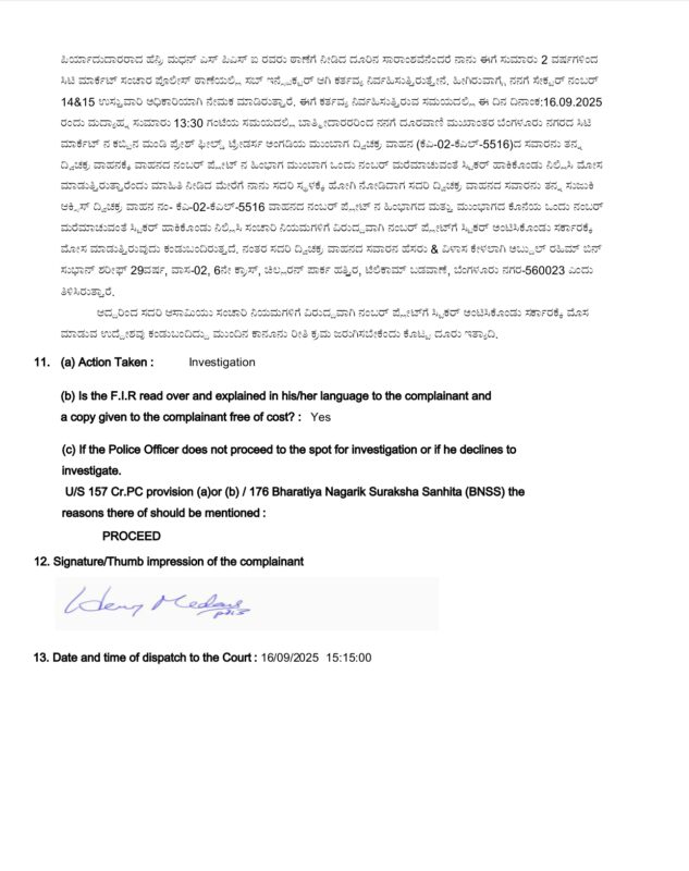 Based on the complaint the police registered an FIR and arrested the vehicle owner and released on bail and even seized the bike for further investigation said a senior officer.