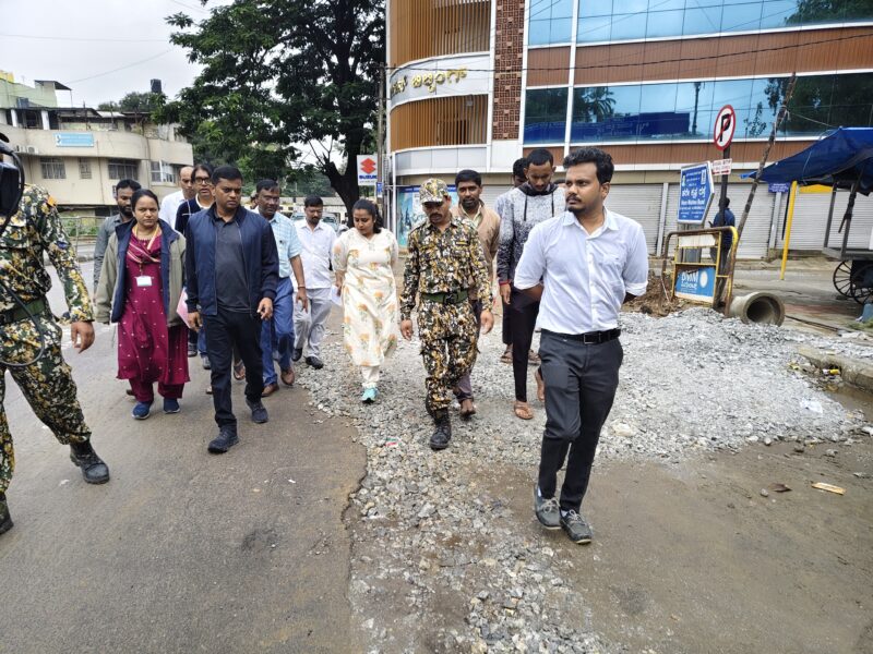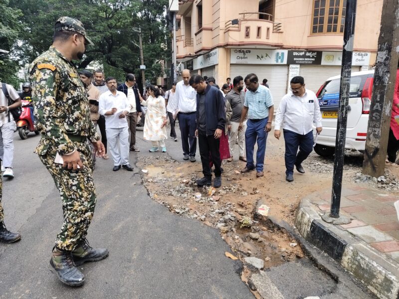 During inspection of key roads such as Sampige Road, Sheshadri Road,and areas around Shivananda Circle,the Commissioner instructed that restoration of road surfaces and pothole-filling should be completed.