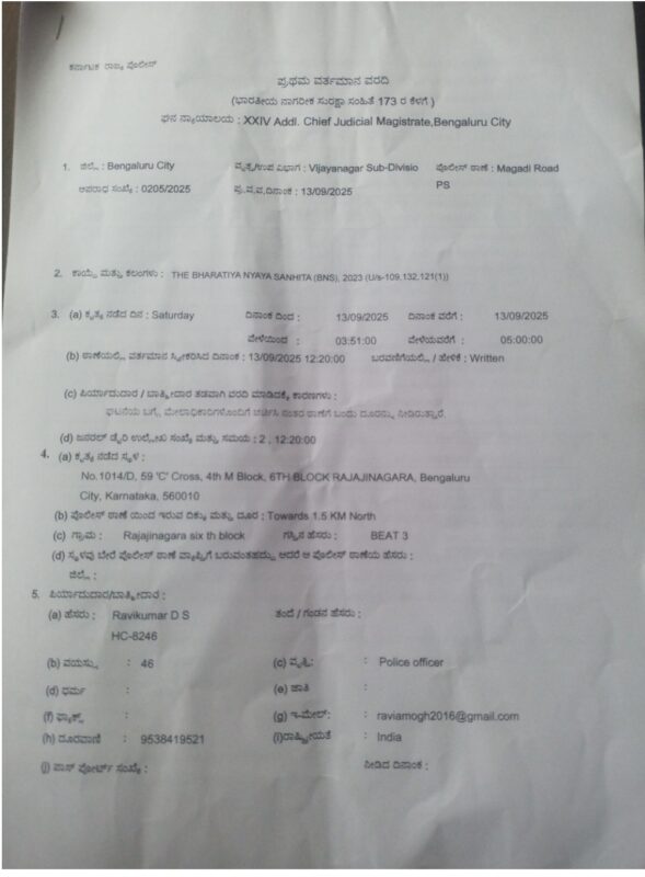 The injured ASI,Suresh was rushed to private hospital with profusely bleeding where doctor treated him suresh got nine stitches on his head and doctors advised him complete rest.