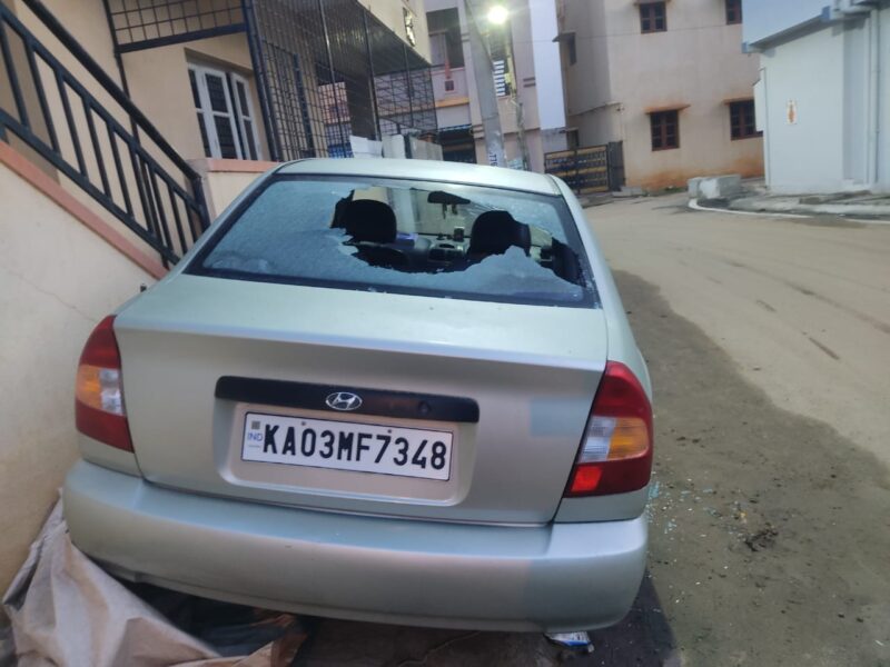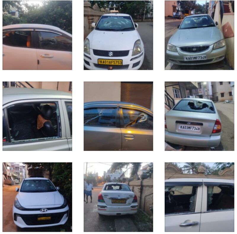 The accused wearing hooded sweatshirts armed with clubs and lethal weapons moved around the Valmiki Nagar and Muddinapalya,smashed the windshields of the vehicles including cars and goods vehicles parked on roadside .