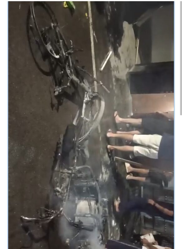 A bicycle parked adjacent to the scooter was also gutted.No one injured in the fire.The fire team late doused the fire.