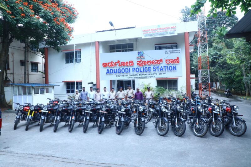 Following the leads of one of a bike theft case,the Adugodi police have arrested a 38-year-old Vegetable vendor from Thiruvannamalai in Tamilnadu and recovered 42 high end bikes worth Rs.1 Crore which he stole and sold them to his friends and relatives at his home town.