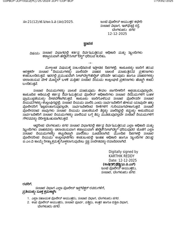 The circular makes it mandatory for all traffic and law and order,crime staff police personnel to follow traffic rules without exception.