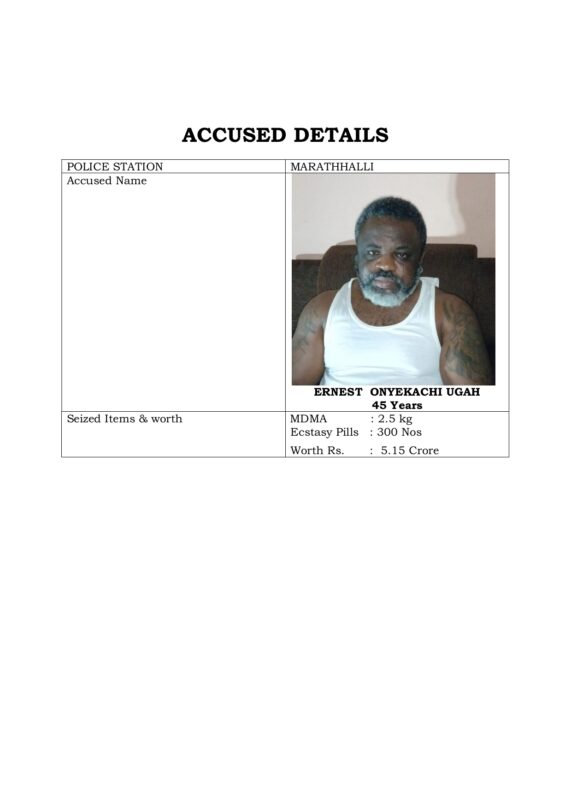 Probe revealed that Ugah is a habitual offender involved in similar cases earlier in Hennur and Kadugodi police station limits.The accused was arrested and after released on bail he continue to peddle drugs,the police, said .