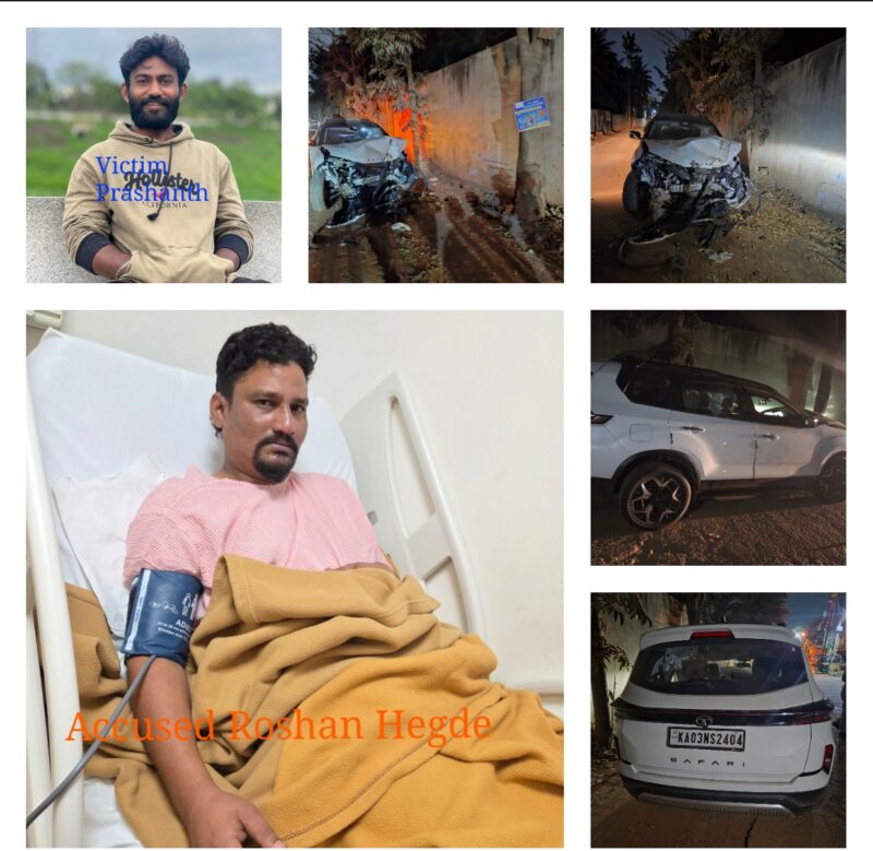 Later,the accused allegedly attempted to flee in his car. Prashanth reportedly clung to the car door,refusing to let him escape.Despite this,the accused continued driving at high speed along the Veerasandra–Kamasandra Road.