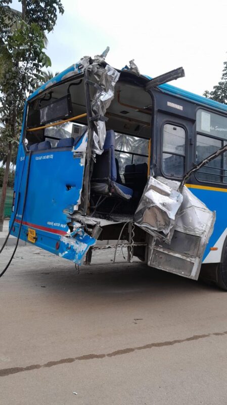 The impact caused damage to the bus,but fortunately, no fatalities were reported as no passengers were travelling.