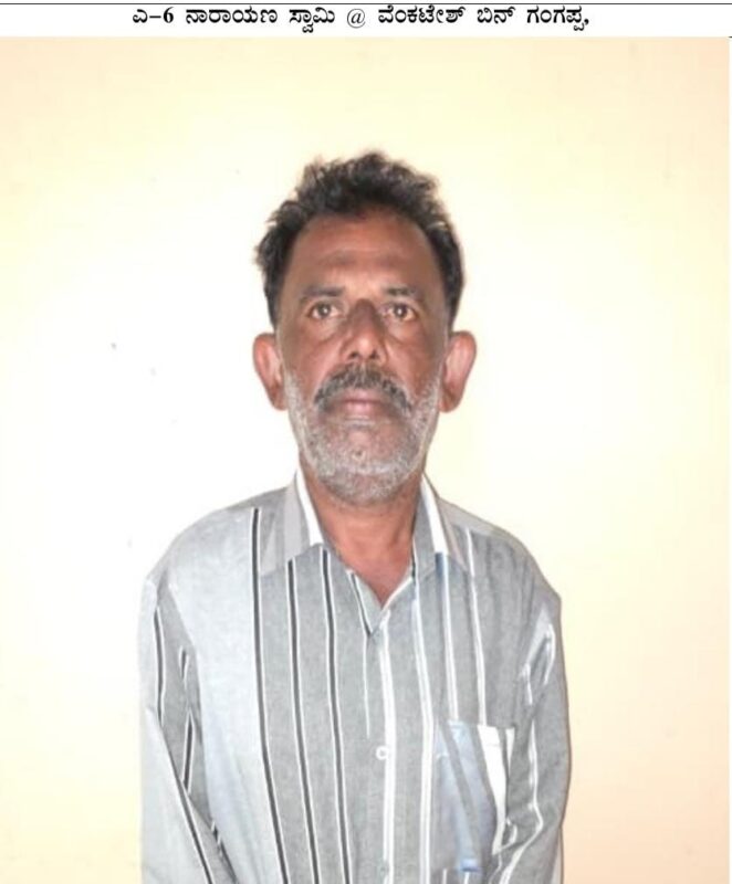 The accused have been identified as C.Krishnakumar Reddy@Krishna Reddy,50,Private bank employee from Yelahanka Old Town,S.Ahmed Shariff,48,a Real estate agent from Sulibele,Venugopal,49,Petty shop owner from Bagepalli,Chikkaballapura District,a habitual offender having three criminal cases pending against him, Sampagirama,47,a Real estate agent and cooking work from,Amruthahalli,Narayana Swamy,52,Municipality worker from,Shidlaghatta Town,Chikkaballapura District, Shivakumar K.V,42,Mixer repair/driver from Ganjigunte, Chintamani Taluk, Chikkaballapura District,T V. Murugeshan, 65,Mason from Madanapalli,Andhra Pradesh,Malayam Latif,53,a Real estate businessman from Anantapur District,Andhra Pradesh and Venkatesh, 57,a cab Driver from Avalahalli,Bengaluru City.