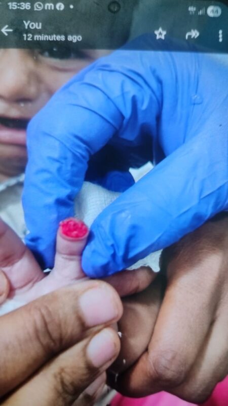 But,during the process of removing the dressing,she reportedly cut the baby’s little finger on the left hand, causing severe pain and injury.