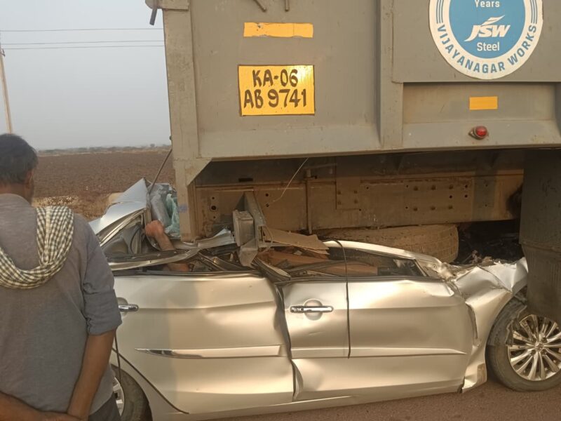 Senior officer told reporters that the accident occurred when the car travelling from Bengaluru towards Ballari crashed into the rear of a lorry near Heggare village.The impact of the collision was severe, leaving the car completely mangled.