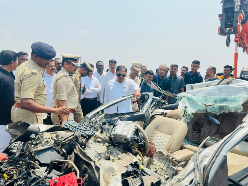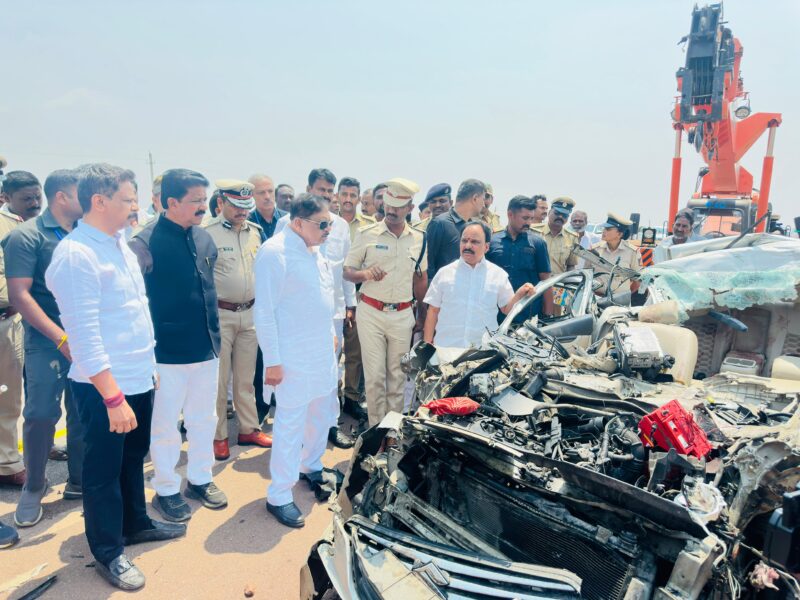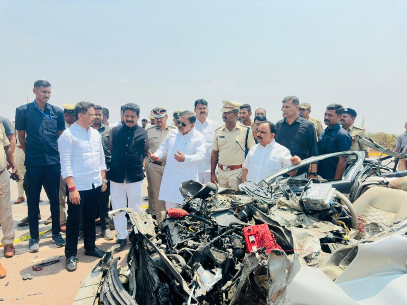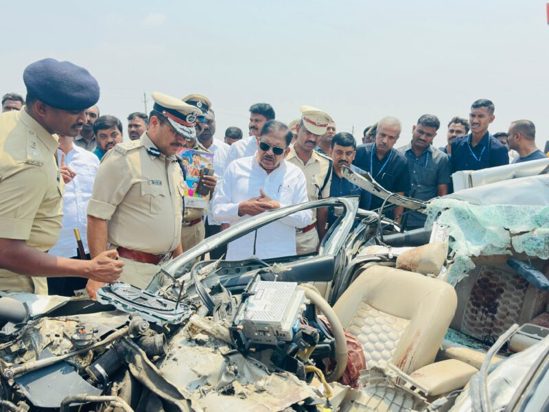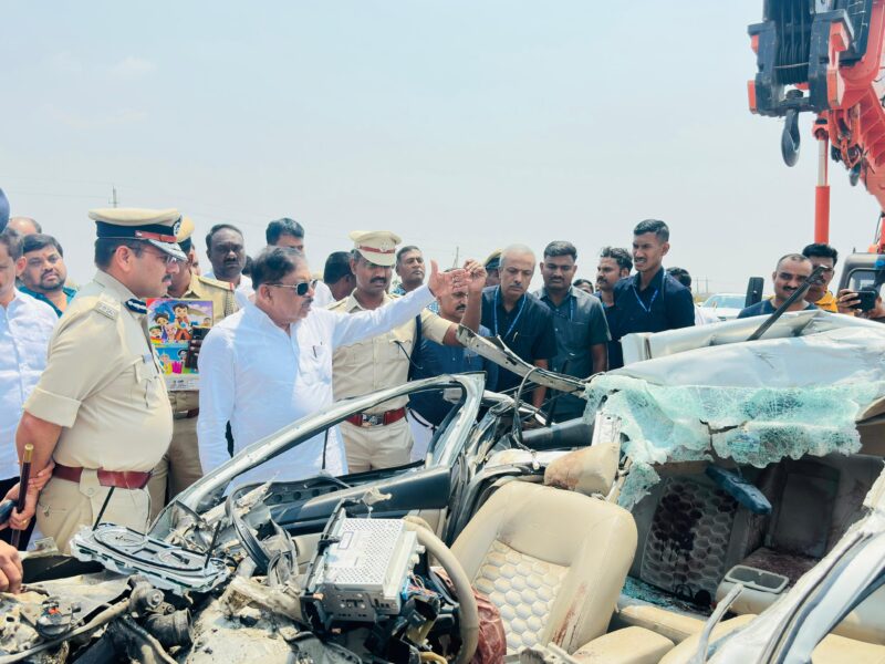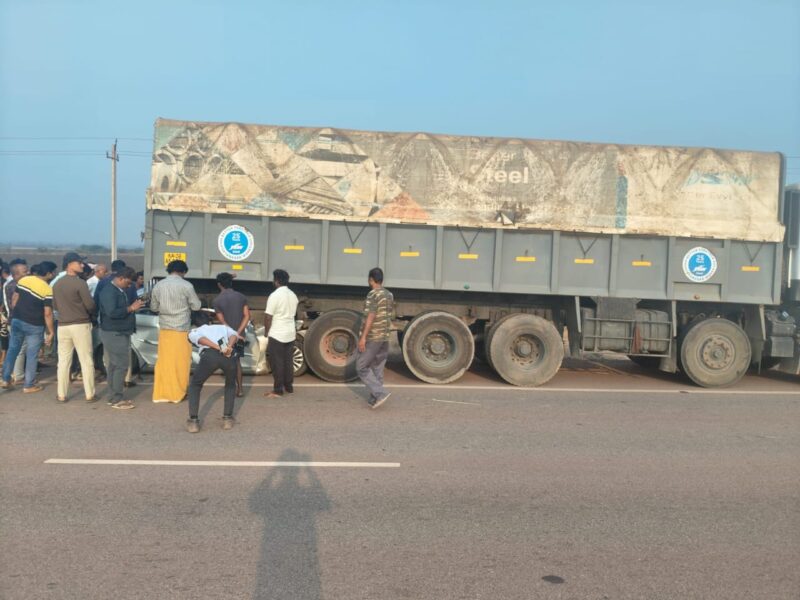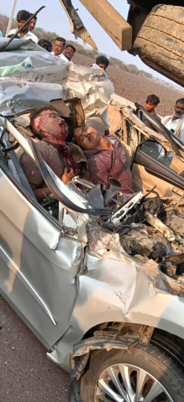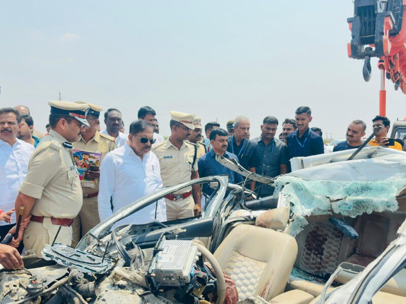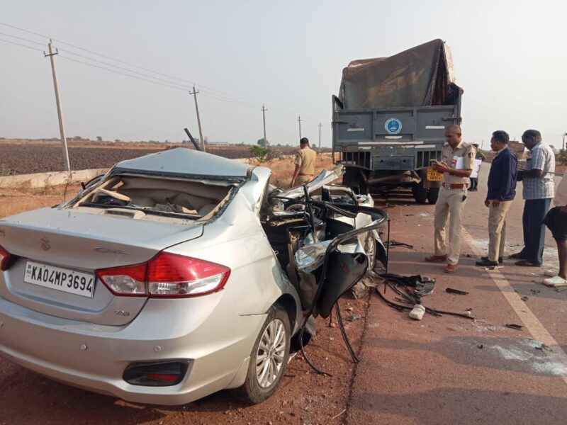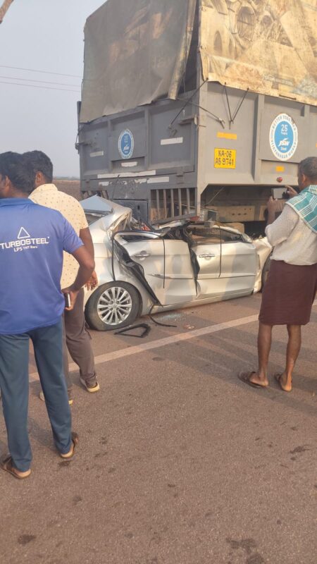 Senior officer told reporters that the accident occurred when the car travelling from Bengaluru towards Ballari crashed into the rear of a lorry near Heggare village.The impact of the collision was severe, leaving the car completely mangled.