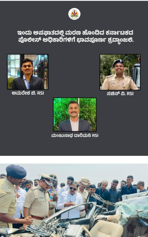 Deeply saddened by the tragic road accident that claimed the lives of three young Sub-Inspectors of Karnataka Police.