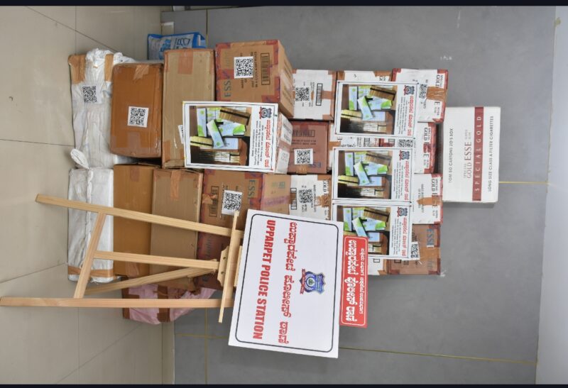 In the first case,Upparpet Police apprehended two persons involved in the illegal storage and sale of banned foreign cigarettes from a shop and godown in Gandhinagar.